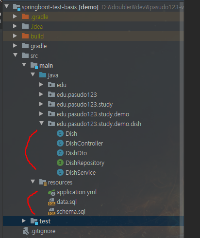 - schema.sql 에는 테이블 생성에 관한 sql 구문이 있다. (ex. CREATE TABLE )