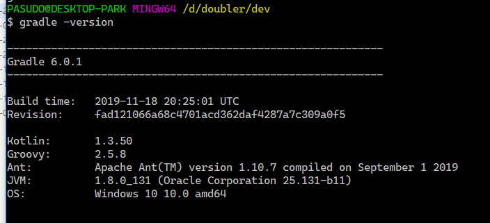 4. $ gradle -version 을 실행하여 버전을 확인한다.