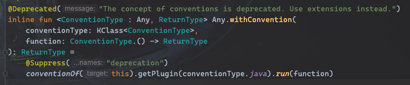 20210828 [gradle] The concept of conventions is deprecated. Use extensions instead