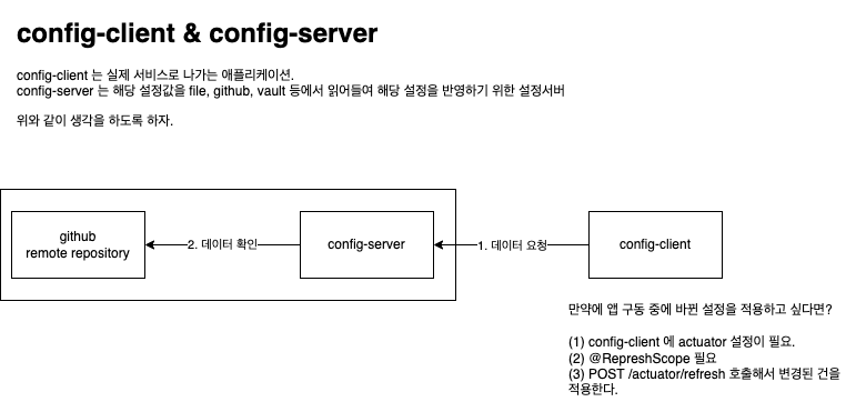 - config 한 정보를 단순 깃 레포지토리에 저장해서, 액츄에이터로 리프레시만 수행.